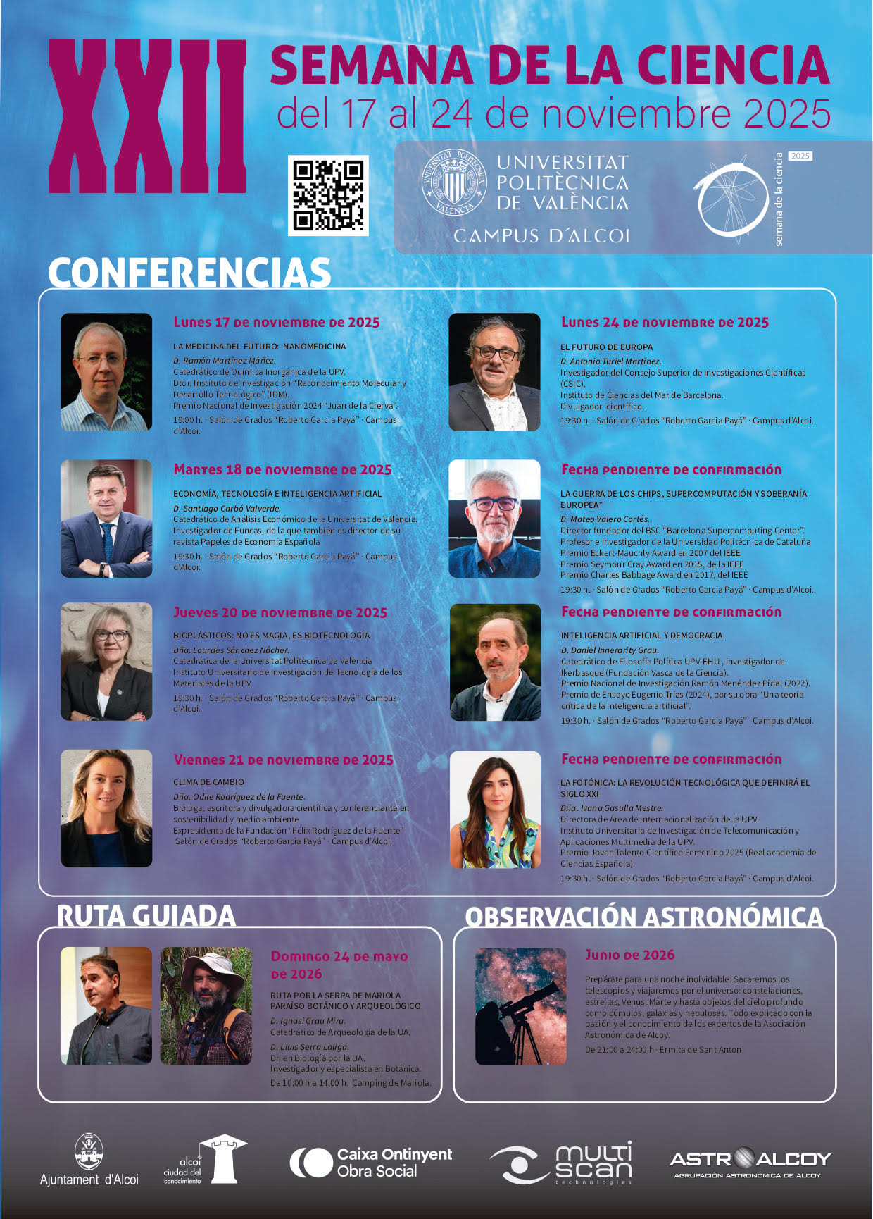 Cuenta con la colaboración de la Fundación Española para la Ciencia y la Tecnología – Ministerio de Ciencia, Innovación y Universidades (FECYT). También colaboran la Cátedras ‘Alcoi Ciudad del Conocimiento’ e Industria Digital, firmadas con el Ayuntamiento de Alcoy; Multiscan Technologies y la Obra Social Caixa Ontinyent.